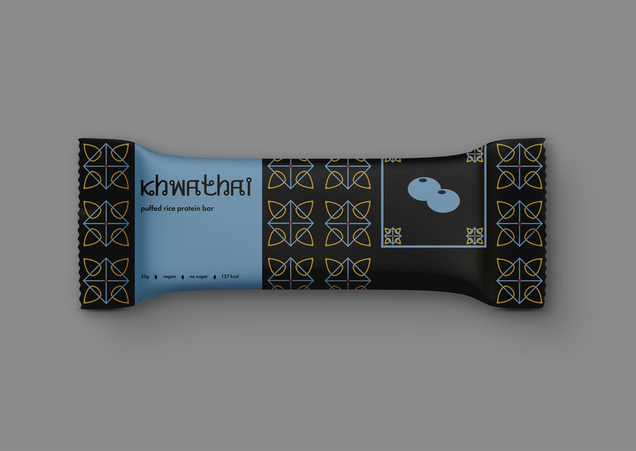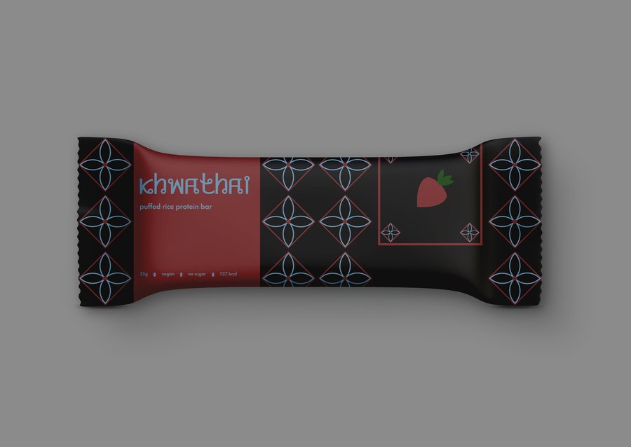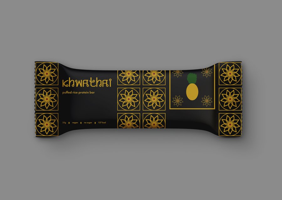 KHWATHAI — бренд протеиновых батончиков из воздушного риса, айдентика которого построена на тайской легенде о богине риса Фосоп. Цель бренда создать универсальный перекус для людей которые питаются по вегану, не употребляют лактозу и сахар.