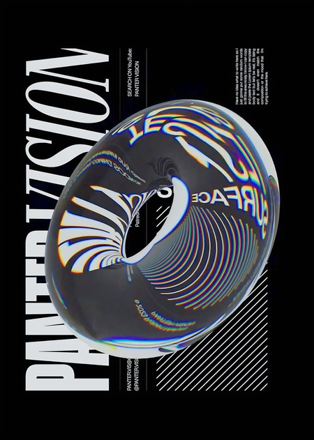 Искажение плоских графических элементов происходит буквально через призму объемной фигуры.