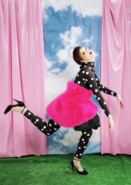 Так он работает и с поп-культурой, ищет образ и раздувает, он берет период и вытаскивает главное, выдавая мем. Работа с поп-дивами выходит из его ДНК и приемов переосмысления. Его героиня не просто поп-исполнительница, это концентрат всего, к которому добавляется эксцентричность, ирония, контрасты и гиперболизация. Таким образом мы можем назвать нашу героиню — Экстра поп-дива.