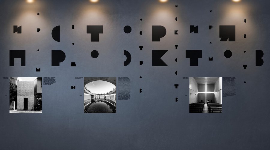 Основная тема второго модуля—шрифт и типографика. В процессе работы студенты создают оригинальные акцидентные шрифты и на их основе разрабатывают системы айдентики и оформление пространства выставки.