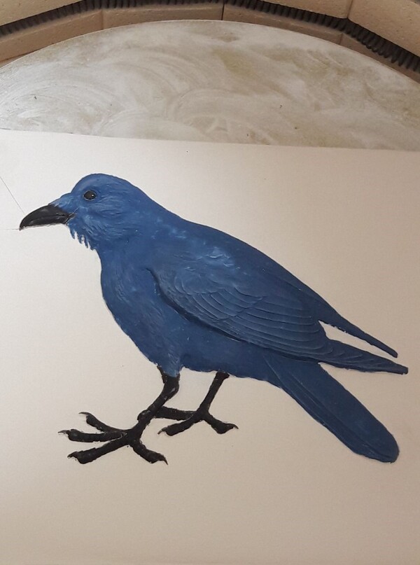 Технологическая особенность работы над плакеткой с рельефным изображением вороны состояла в нанесении цветного фарфора непосредственно на гипсовую форму с помощью кистей разной формы.