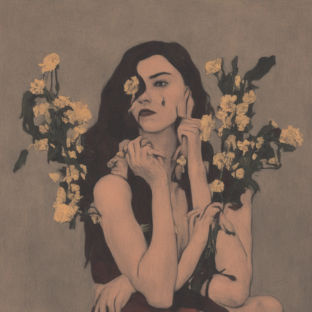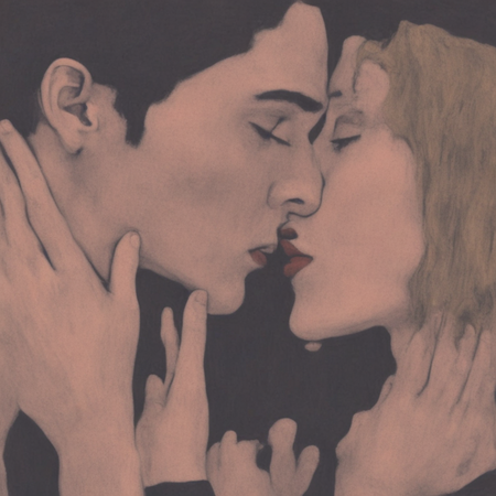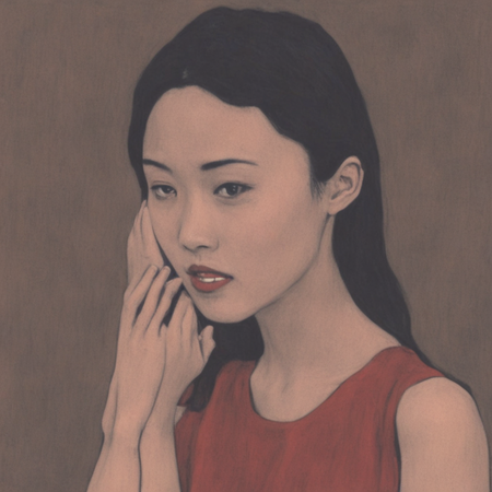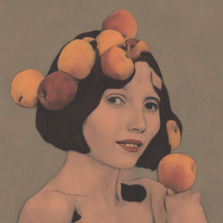 - в большинстве картин Никиты можно увидеть тёмный либо хорошо прописанный фон, в работах нейросети же он более нейтральные - цветовая палитра немного смазалась, изображения стали приглушеннее. Однако, акцентный бордовый нейросеть считала хорошо. - баги с глазами. Нейросеть не совсем точно изображает мелкие детали лица