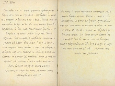 Проект представляет собой отрывки из дневника выжившей, в зарисовках запечатлены все последствия ивента: начиная от иллюстраций того что стало с привычным нам миром, заканчивая демонстрацией распада сообщества и следующими вместе с ним моральных принципов. Желание автора продолжать вести дневник угасает вместе с тем как она все подробнее узнает что стало с родным для нее местом.