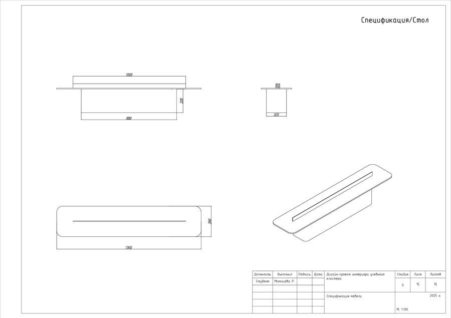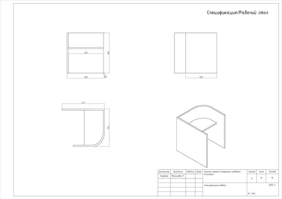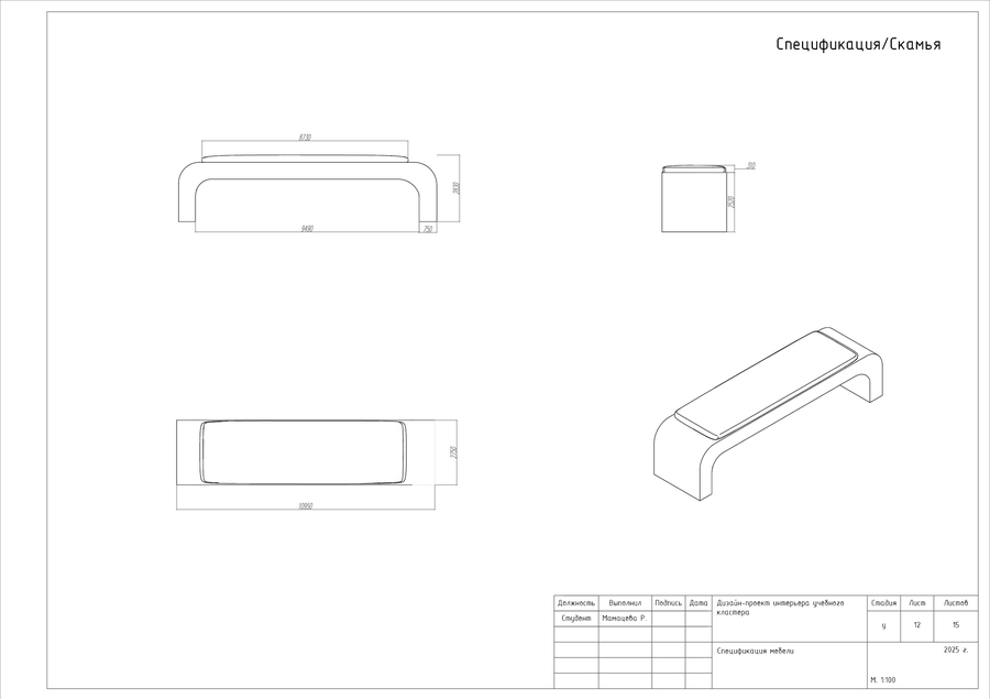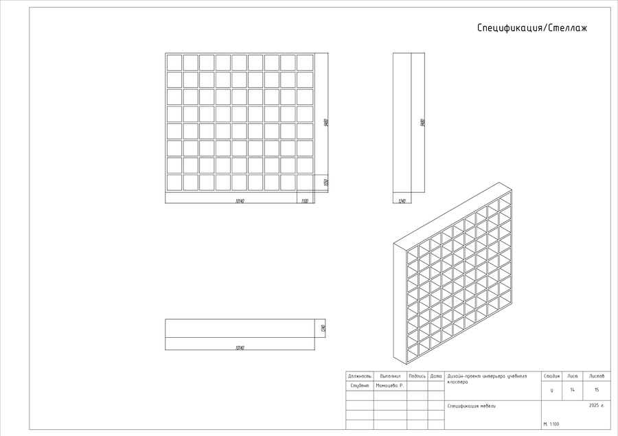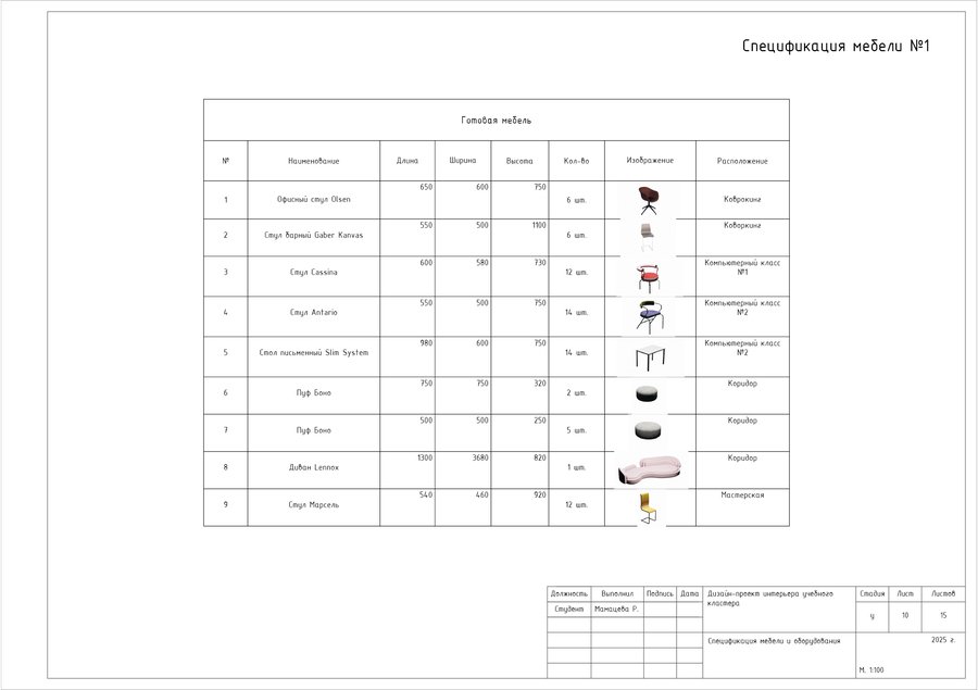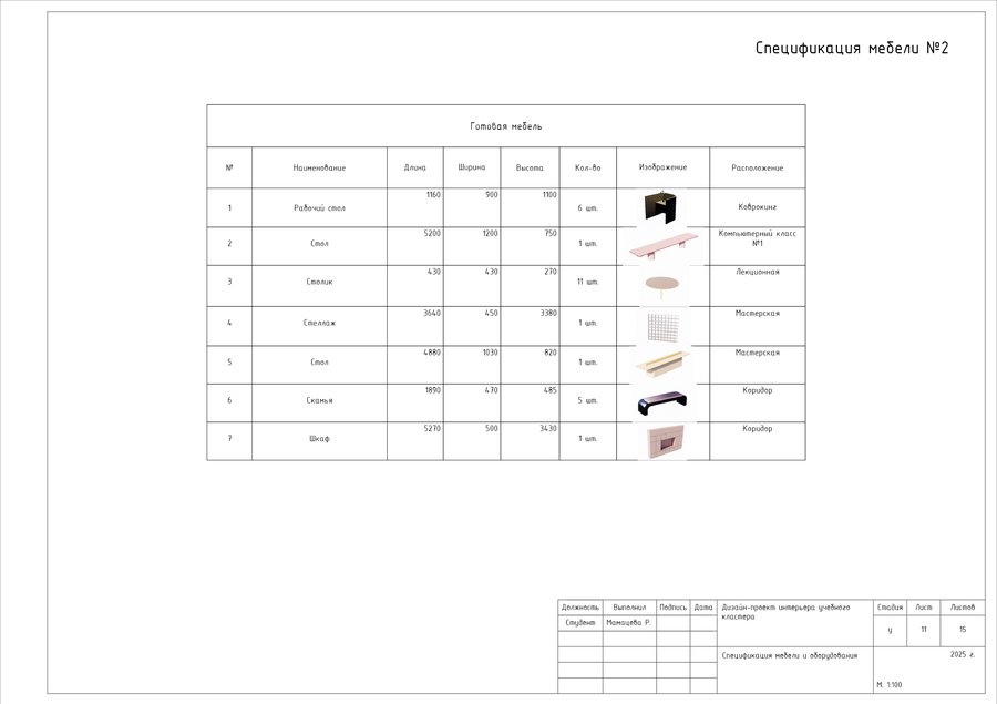В данном проекте представлен альбом учебных чертежей, спроектированный для учебного кластера в Школе дизайна НИУ ВШЭ для направлений «Дизайн среды и интерьера». Работа выполнена в течение второго модуля в программе AutoCAD по дисциплине «Специальные технологии».