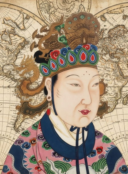 Модель: Qwen Промпт № 1: Опиши изображение Промпт № 2: На изображении представлен портрет женщины в традиционном китайском стиле. Это, вероятно, императрица У Цзэтянь, первая и единственная женщина-император в истории Китая.