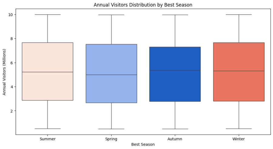 4. Boxplot (Лучший сезон для посещения и посещаемость)