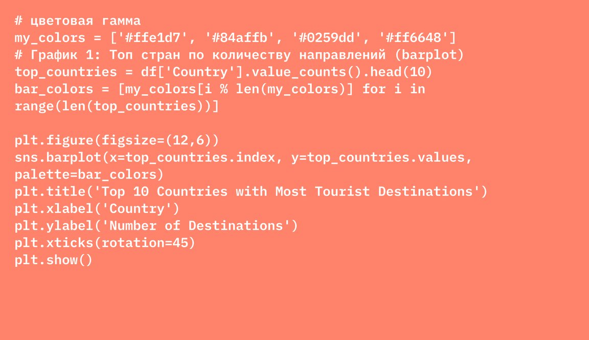 1. Barplot (Топ 10 стран по количеству туристических направлений)