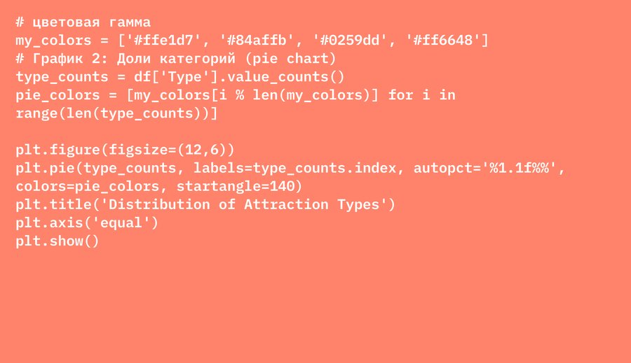 Pie chart — демонстрирует доли категорий достопримечательностей.