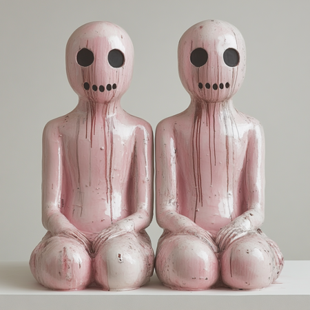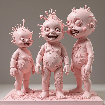 «Figurines of altered, distorted beyond recognition, images of children’s toys made of pink plaster»