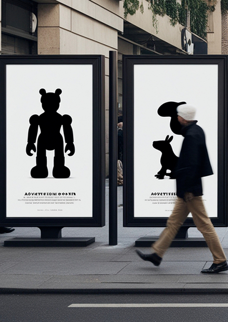«Make advertising posters on the streets with people passing these billboards. with images of silhouettes of incomprehensible shapes that from a distance resemble toys, animals. Conciseness and uniqueness, elitism should be reflected.»