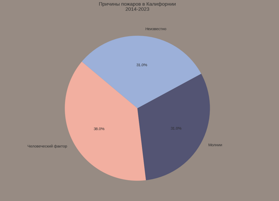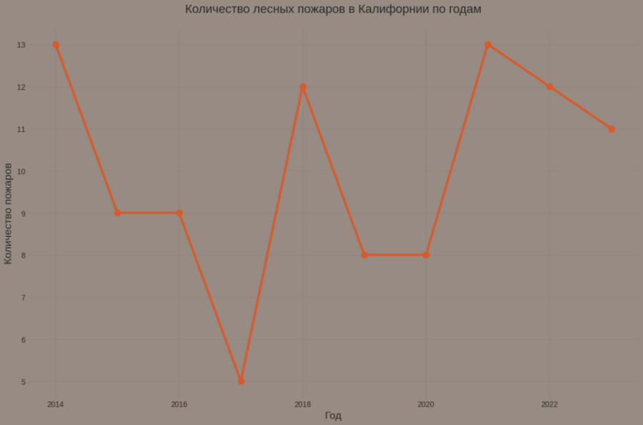 Разразившиеся в январе 2025 года масштабные пожары в Лос-Анджелесе возобновили внимание общественности к природным катастрофам Калифорнии. Мне стало интересно попытаться узнать о характерных особенностях таких стихийных явлений. В этом проекте проанализированы данные о лесных пожарах региона и разрушениях, которые они за собой повлекли в период с 2014 по 2025 года. Данный датасет был взят с сайта kaggle.com и он содержит информацию о дате, локации, ущербе, площади возгорания, пострадавших и причинах каждого из пожаров.