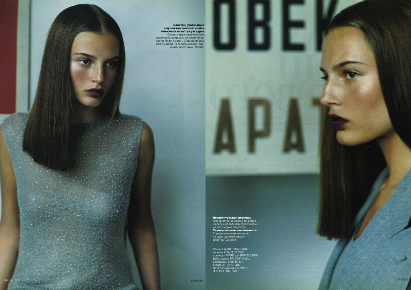 Фотограф: Kelly Klein Стилист: Janie Pickering Визажист: Lisa Eldridge Мастер по волосам: Ward (для Bumble Bumble) Модель: Bridget Hall Декорации и реквизит: Michael Raynolds