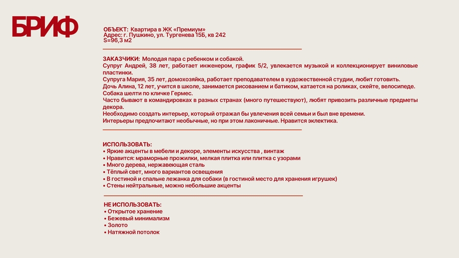 Основной задачей проекта было создание функционального и выразительного интерьера, отражающего индивидуальность семьи и их увлечения.