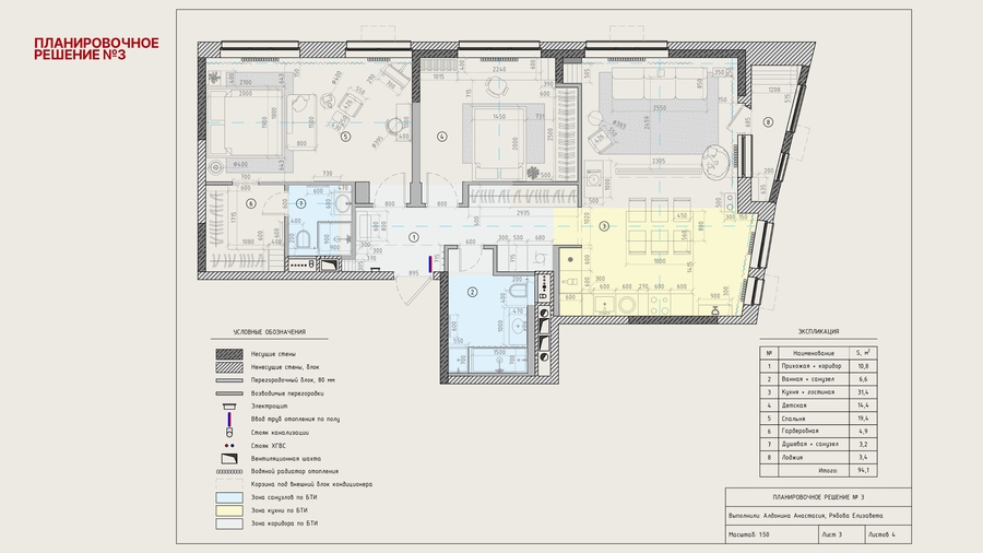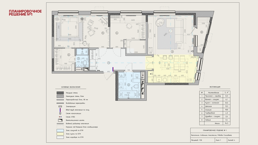 Квартира Андрея и Марии дала возможность организовать просторную кухню-гостиную, мастер-спальню, детскую и несколько санузлов.