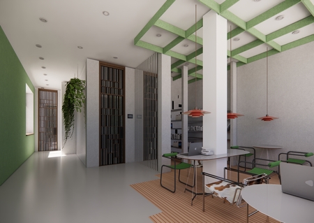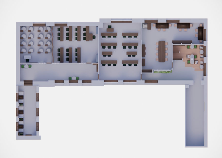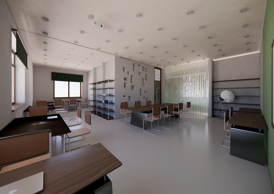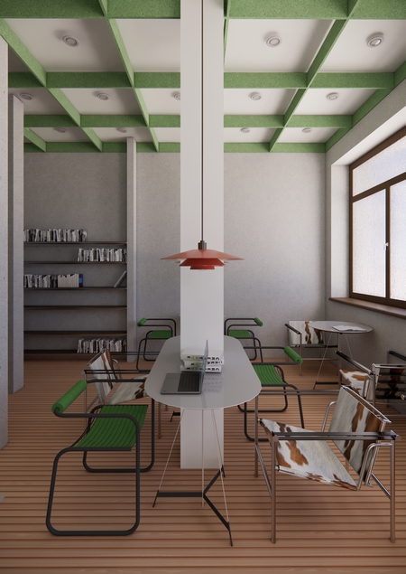 Проект интерьера учебного кластера в школе дизайна HSE ART and Design School. Пространство задумано как живое, динамичное окружение, способное вдохновлять, поддерживать процесс обучения и стимулировать обмен знаниями.