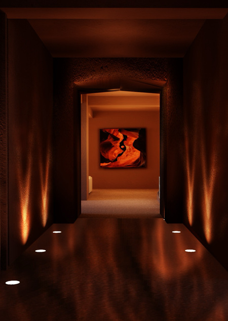 Цветовая гамма передает полное ощущение, что человек находится на другой планете. Стены будут фактурные и в бежевых оттенках. Свет оранжевый и приглушенный. Акцентным светильником является сфера, которая напоминает планету, которая освещает пространство. Мебель создана в плавных линиях, что еще более погружает в состояние невесомости.