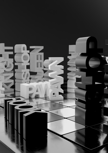 Что если взять Гельветику и на её основе создать шахматы. Вместо фигур-символов будут слова, буквально означающие игровые названия.