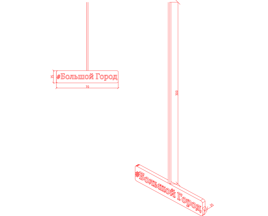 Конструкция не предполагает сложного монтажа, может быть модифицирована (использование других слов, количества табличек, высота расположения) и подходит для экспонирования как на улице, так и в помещении.