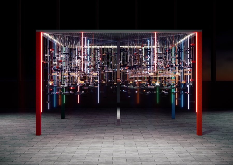 С наступлением темноты инсталляция раскрывается для зрителей с другой стороны: сценарии освещения делают её еще ярче и притягательнее