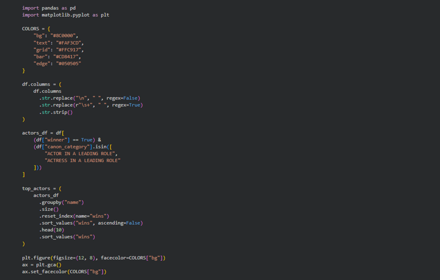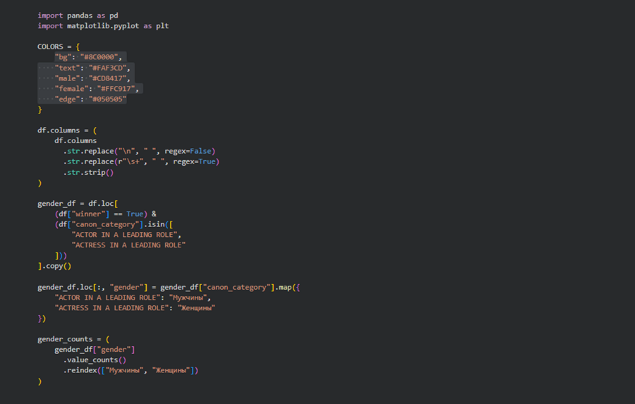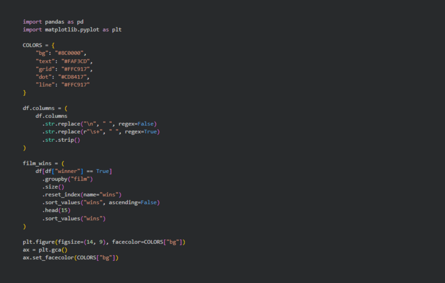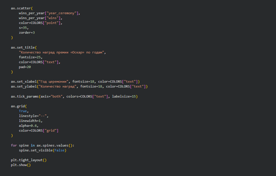 Меня заинтересовало, как сухая статистика может рассказать историю развития киноиндустрии. Я всегда с интересом следила за церемониями, обсуждала победителей и замечала, как со временем меняются вкусы, жанры и лица, получающие главную кинематографическую награду. Поэтому идея посмотреть на «Оскар» не с позиции зрителя, а через данные показалась мне особенно интересной.