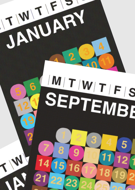 Календарь, вдохновлённый теорией цвета Джозефа Альберса, исследует, как меняется восприятие одного и того же цвета в зависимости от его окружения.