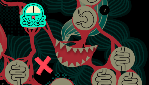 В свой ход можно переместиться и захватить свободную клетку или напасть на чужую. Или пропустить ход — тогда паразит получит фишки! Сколько — зависит от органа, где он находится. Сколько там клеток, столько и фишек получит паразит.