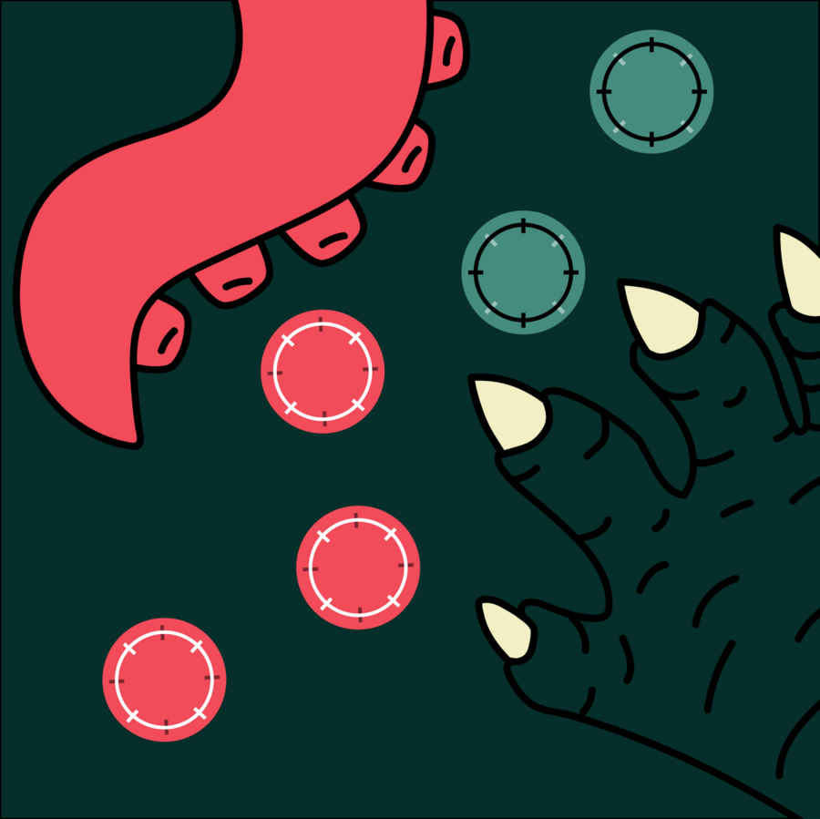 Чтобы сразиться за клетку, паразиты тайно решают, сколько фишек на нее поставят и какую тактику выберут. И вскрываются. Тот, кто больше поставил, победил. Но стоит помнить, что потерянные в бою фишки не возвращаются!
