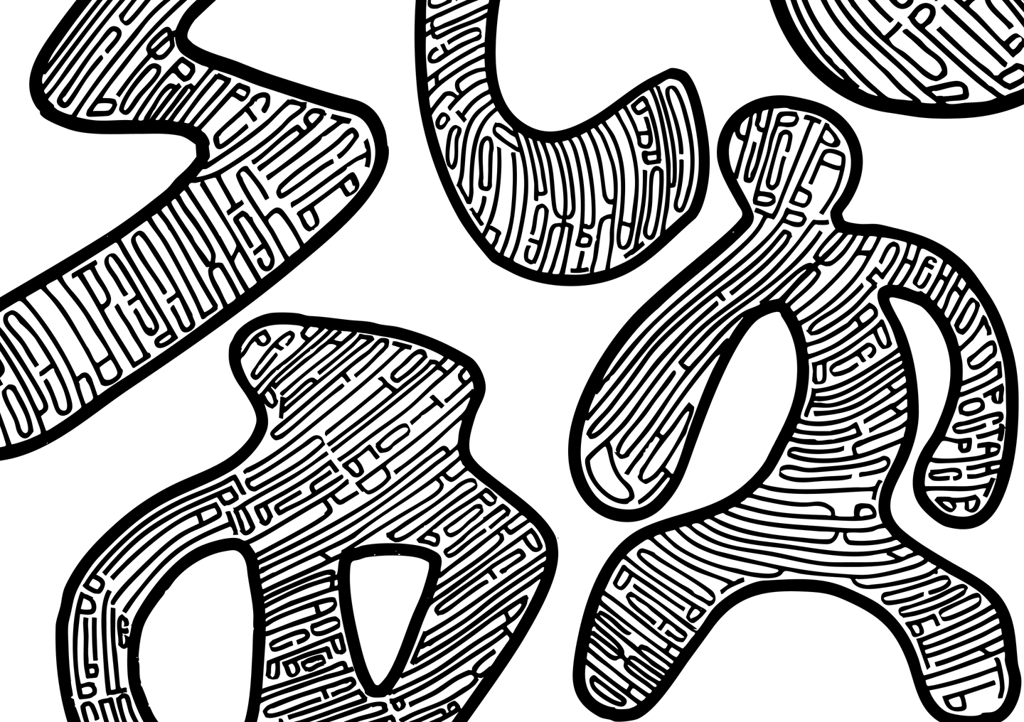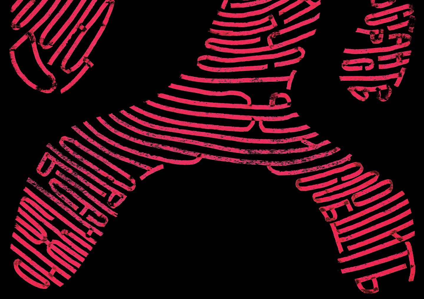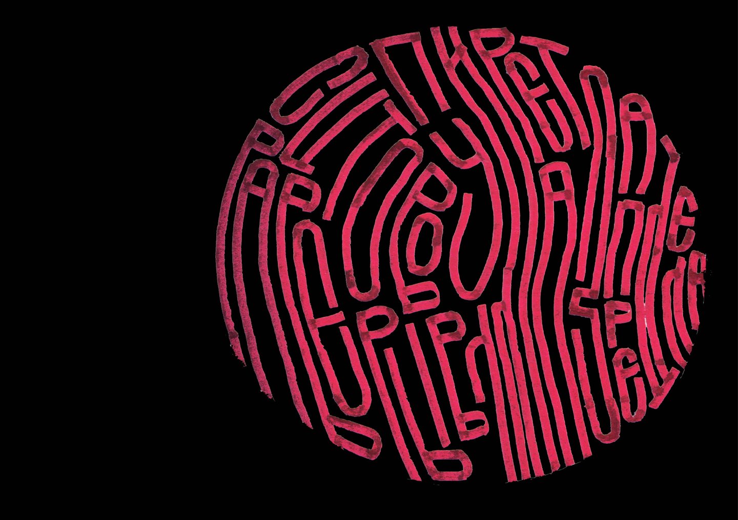 я беру текст манифеста и пишу его в стиле славянской вязи — то есть в виде цельных слов, но заключая их в произвольные силуэты, формы, вдохновлённые протосинайским письмом, тем, что существовало у истоков буквенной записи и современного понятия «слово»
