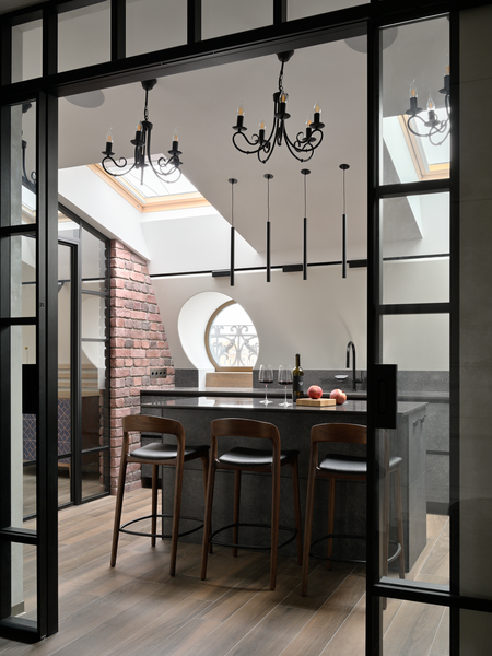 В этой, интереснейшей для меня, работе я хотела передать многогранность и разнообразие архитектуры интерьеров в различные временные периоды. Подчеркнуть то, что интерьер живёт свою сложную, иногда многовековую жизнь, меняясь и подстраиваясь под актуальные нужды своих домочадцев. Все решения, идеи и детали спроектированы так, что, проходя по комнатам, чувствуешь движение времени, осязаешь его изменчивость, но, одновременно, замечаешь целостность и упорядоченность