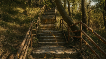 Я выбрал безымянную лестницу близ школы № 4, по которой люди до сих пор ходят, хотя она давно в аварийном состоянии. Каждый шаг по ней понемногу разрушает её дальше — и именно это хрупкое состояние стало основой для идеи бережного восстановления в духе кинцуги.