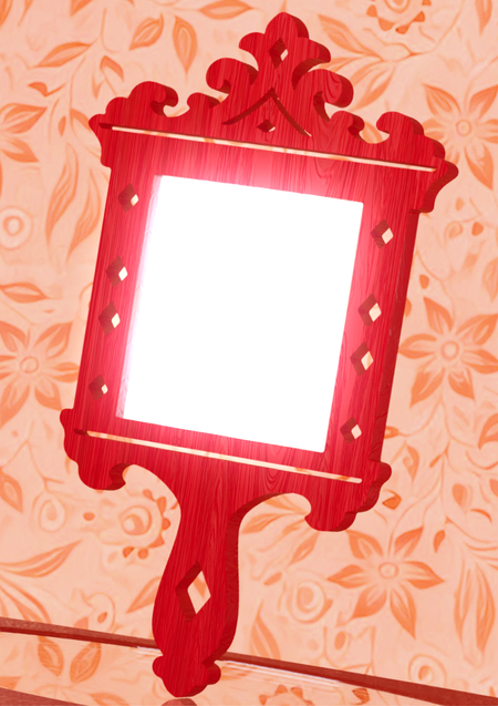И так как это ручное зеркальце, хотя и габаритное, однако может прекрасно служить владельцу и как акцентный декор в интерьере, и как действительное ручное зеркальце, в котором можно, например, быстро подкрасить губы.