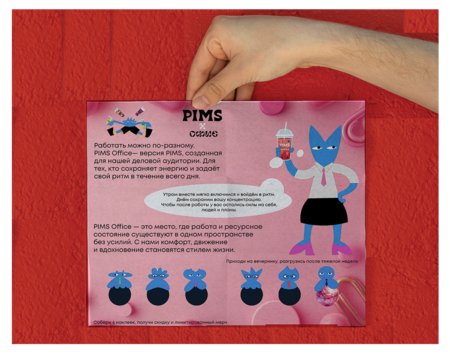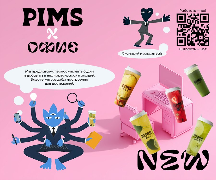 PIMS — бренд современных тонизирующих напитков на основе ферментированного чая, с разнообразными фруктовыми и сливочными вкусами, позиционируемый как яркая и энергичная альтернатива кофе для молодёжи.