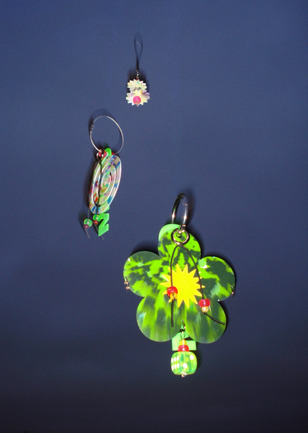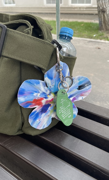 сборка началась с основной коллекции — цветов. помимо них самих на карабинах были собраны мелкие подвески из бусин и фигурок на жгутах/проволоке, в пластиковых элементах были отверстия с кольцами (цветочный пирсинг)