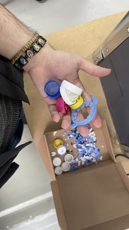 первые прототипы были созданы из переплавленных крышечек, в работе с этим видом пластика возникало много трудностей, но это была хорошая отправная точка
