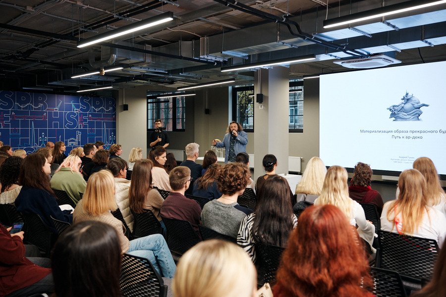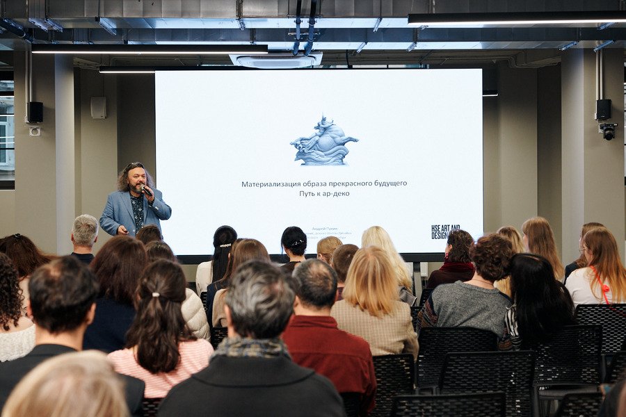 25 октября 2025 года в Канатном цехе было не только красиво, но и познавательно: гости узнали о влиянии эпохи ар-деко на современные дизайн, моду и устройство городов на параллельной программе лекций, подготовленной кураторами Школы дизайна Леонидом Алексеевым и Андреем Пуниным