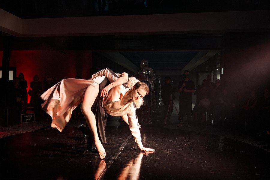 Кульминацией выставки стал танцевальный перфоманс, созданный Леонидом Алексеевым специально для выставки. Под музыку Ивана Красотина экс-этуаль Мариинского театра Дарья Павленко и хореограф Олег Габышев в дуэте воплотили сюжеты кинематографа 1920–40-х годов. Три акта, вдохновленные главными фильмами эпохи («Путешествие на Луну», «Ниночка», «Человек-машина», и, конечно, «Метрополис»), джазом и немым кино, механизированные ломаные движения и трагедия звёзд золотой эры Голливуда, развернулись прямо в атриуме Канатного цеха.