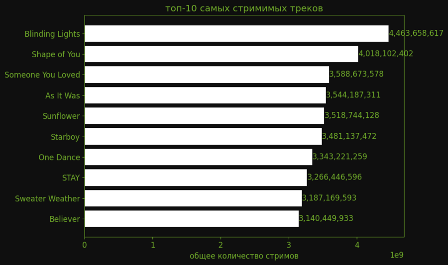 // топ-10 самых стримимых треков