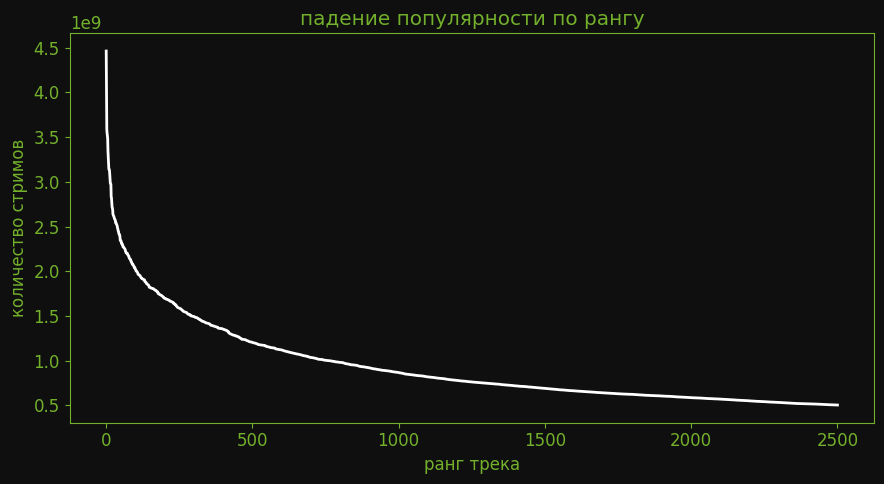 Несмотря на то что топ-10 составляет малую долю от общего числа треков, на них приходится значительная часть всех стримов, что указывает на концентрацию внимания вокруг небольшого числа хитов.