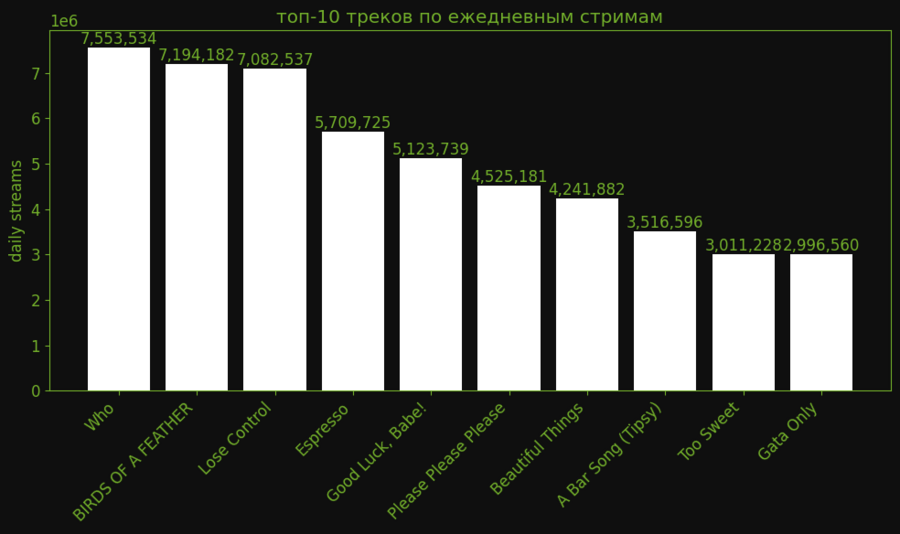 // топ-10 треков по ежедневным стримам