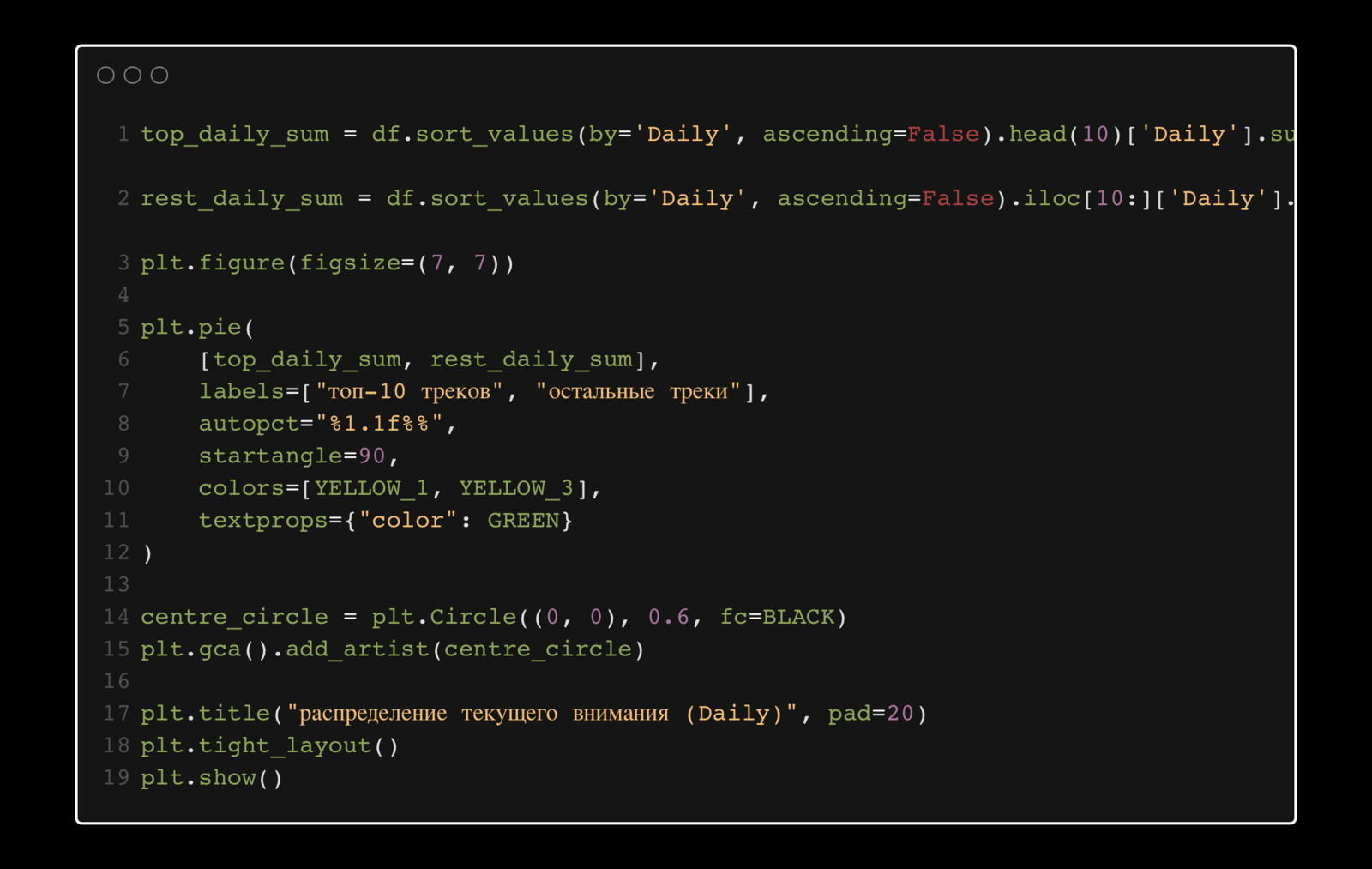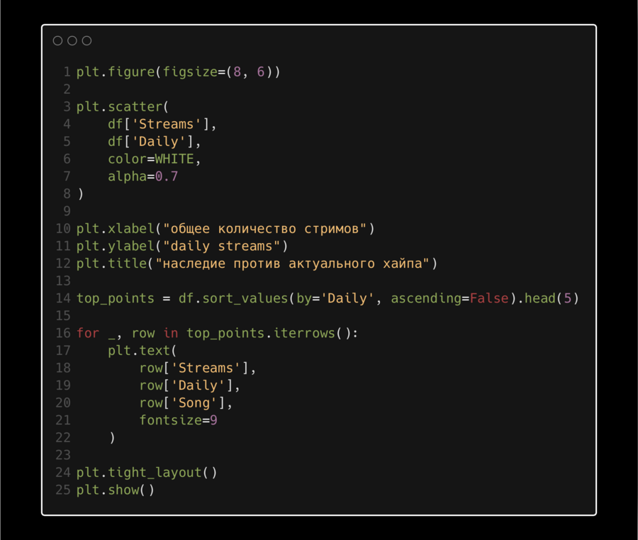 Цвета, подписи и параметры оформления задавались исключительно кодом, без постобработки в графических редакторах. Референсом здесь послужила редакционная инфографика музыкальных медиа и аналитические визуализации стриминговых платформ.