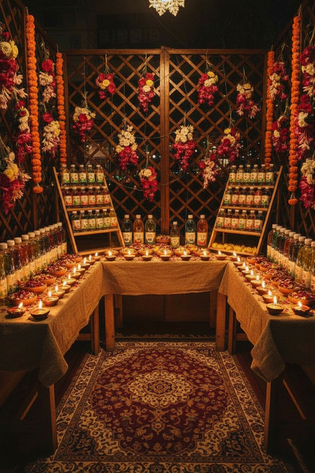 Лавка находится на осенней ярмарке и выполнена в традициях праздника Дивале. Оформление поможет людям больше познакомиться с культурой Индии — страны, откудаа эксспортируется мой бренд