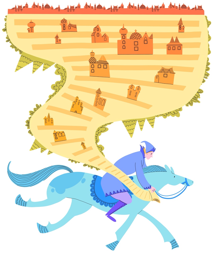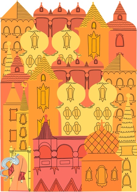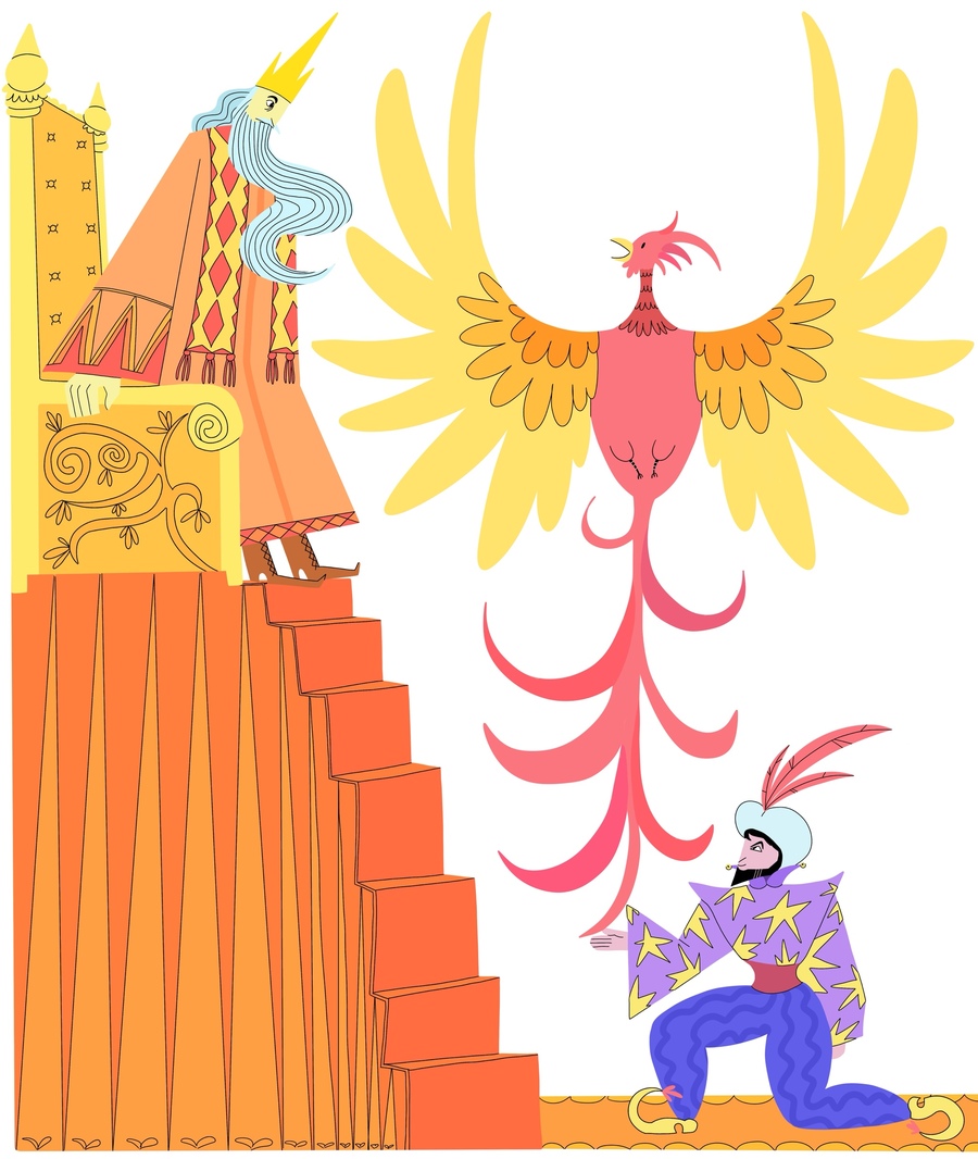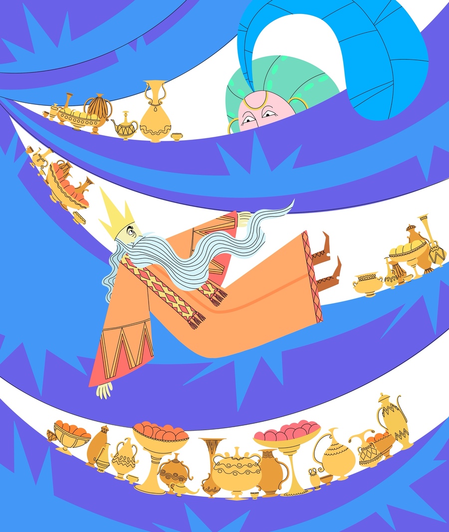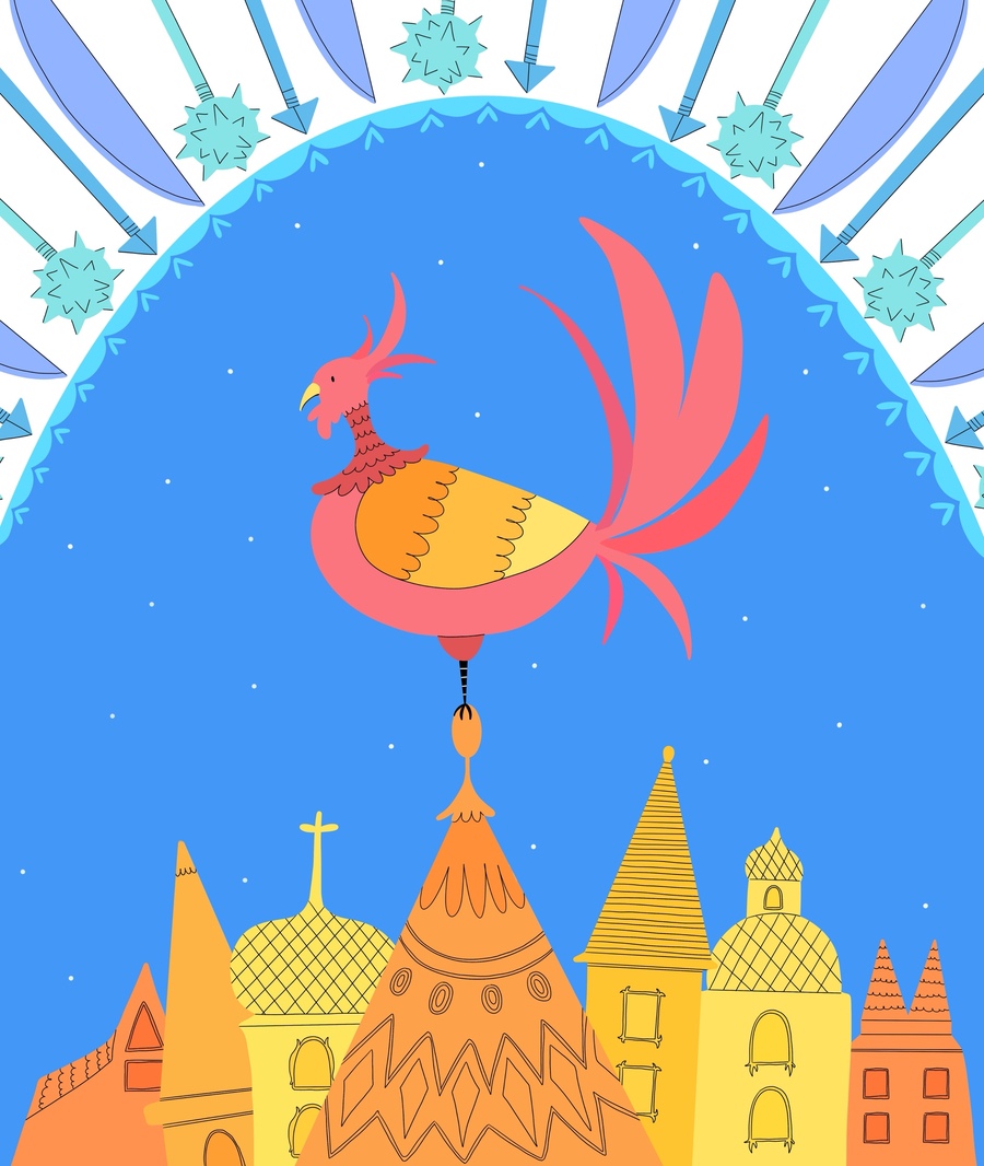 Серия иллюстраций к «Сказке о золотом петушке», переосмысленная через визуальный язык старых мультфильмов Cartoon Network. Иллюстрации строятся на выразительных силуэтах, где каждый персонаж выглядит как самостоятельный анимационный образ.