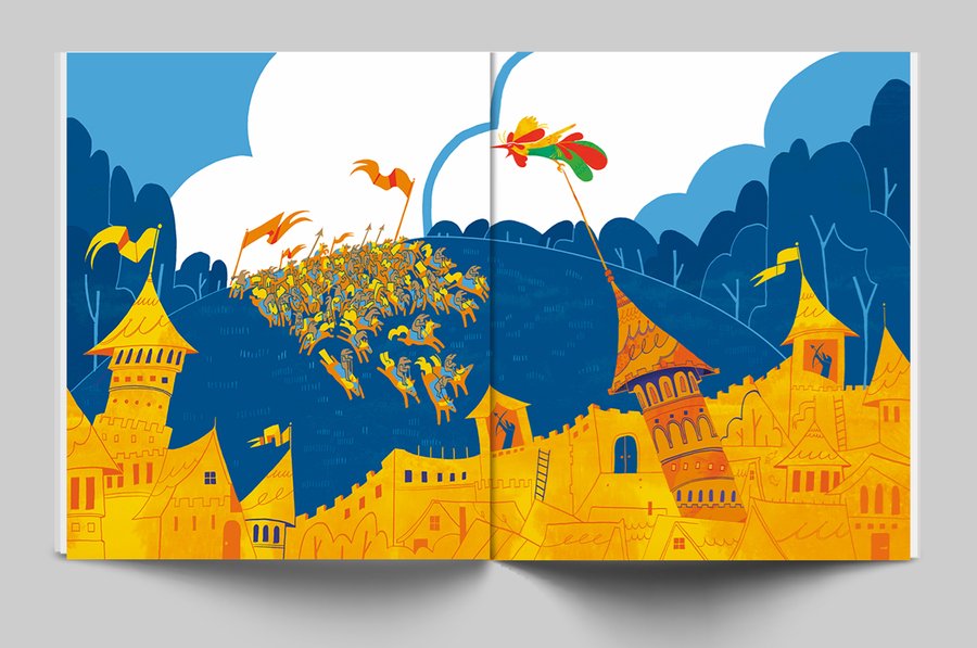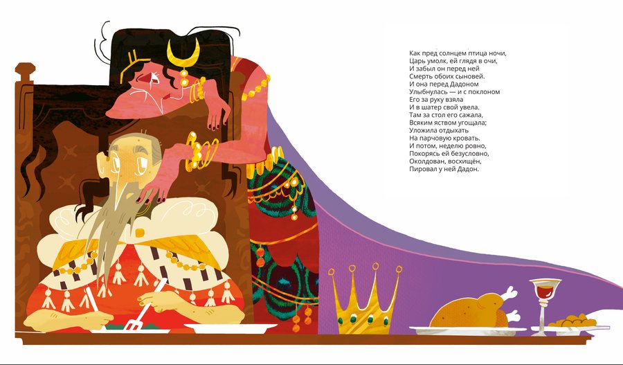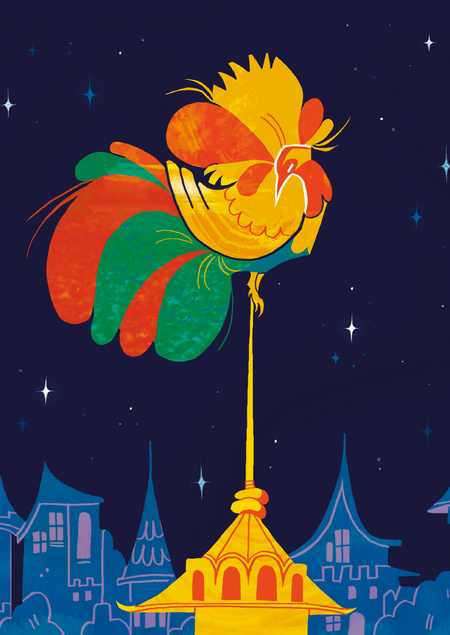 Серия иллюстраций основана на сказке о Золотом Петушке.