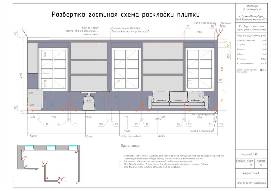 Бриф Референсы Мудборд Текстурная доска План квартиры после перепланировки Визуализации Исходный план квартиры План существующих коммуникаций План демонтажа Функциональное зонирование Монтажный план План расстановки мебели План расстановки мебели с размерами План раскладки полов План теплых полов План потолка План расположения осветительных приборов План групп включения освещения План электроустановочного оборудования План сантехники План расположения отделочных материалов Схема маркировки углов помещений для разверток Развертки Спецификация