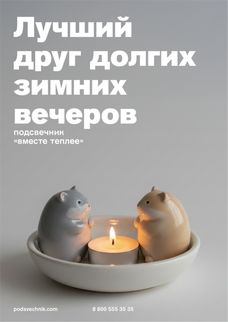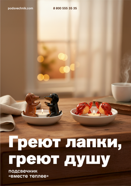 Инструменты: ChatGPT, Nano Banana, Adobe Illustrator, Adobe Photoshop После этапа рендеринга были сформированы отдельные промпты для рекламных постеров в ChatGPT. На их основе в Nano Banana создавались визуальные композиции с использованием рендеров подсвечников. Финальная доработка постеров — выравнивание композиции, работа с типографикой и цветом — выполнялась в Adobe Illustrator и Adobe Photoshop.