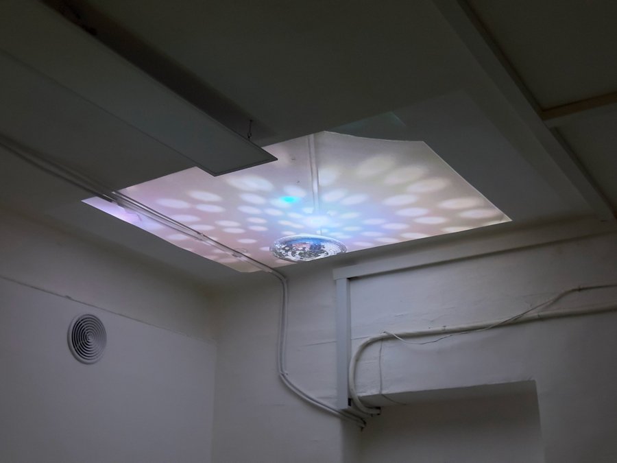 Во время выставки в 20:00 у меня зазвенел будильник — напоминалка, что нужно сделать фото. Так получилась последняя, бонусная пара снимков, на которых видно кусочки фотографий из основной серии.
