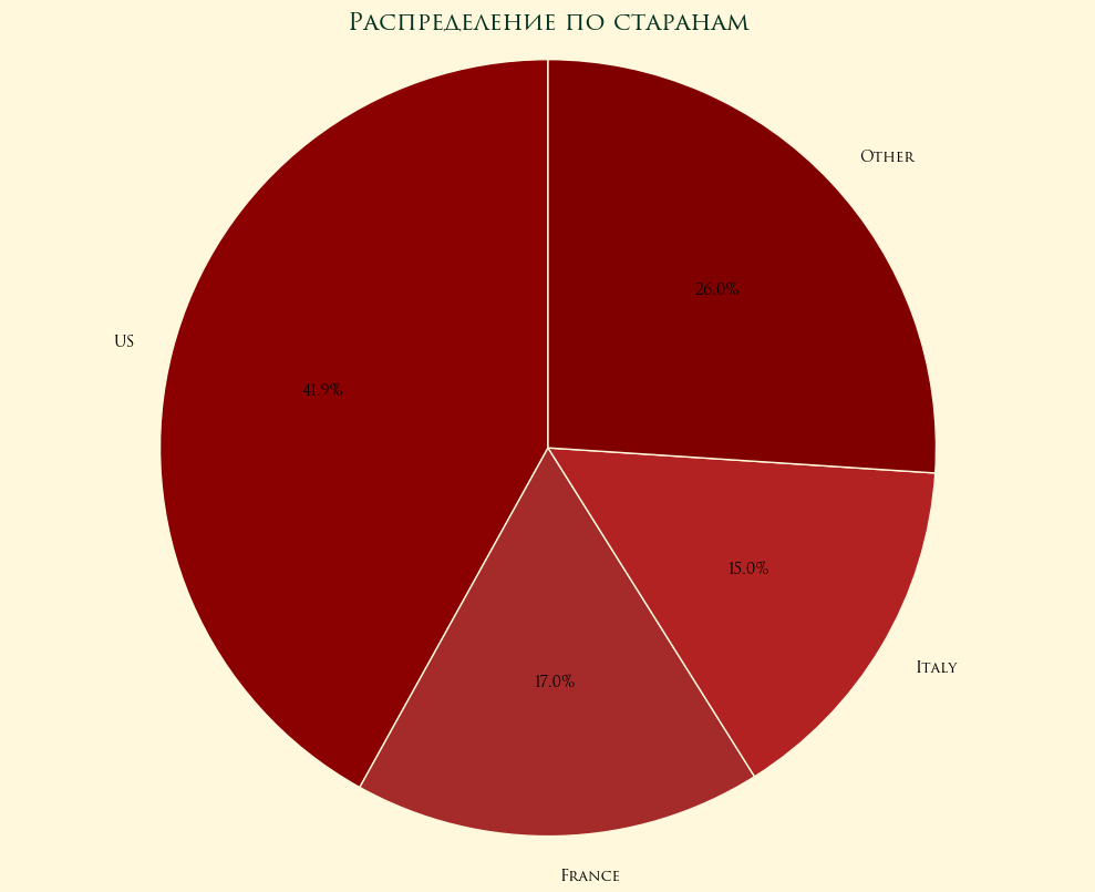 Для оформления графиков выбрала палитру, ассоциирующаяся с винной тематикой