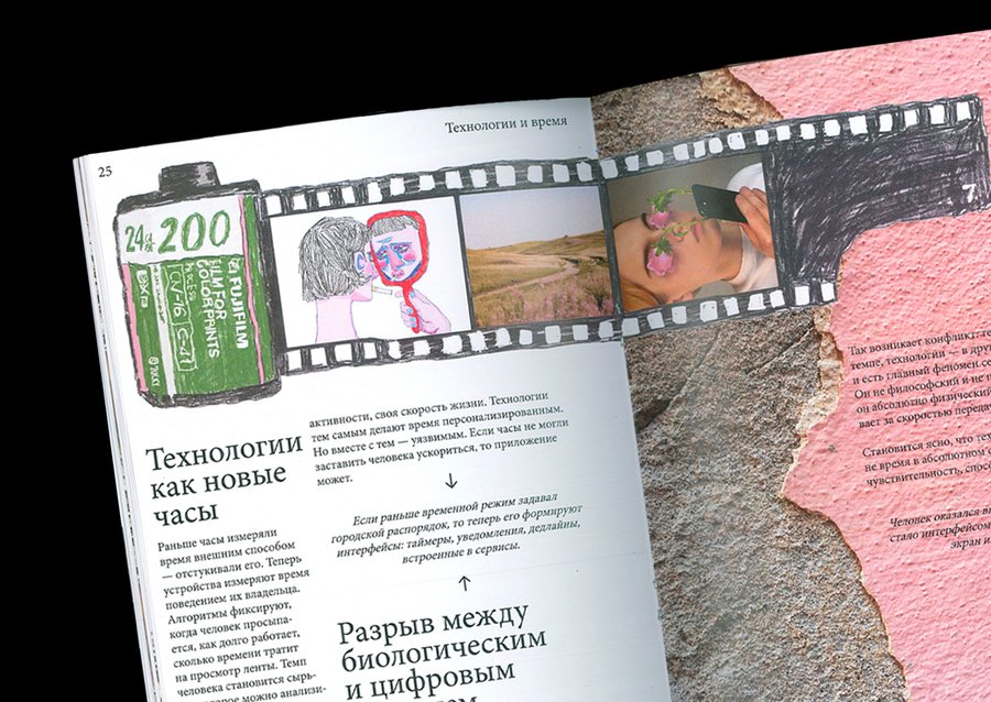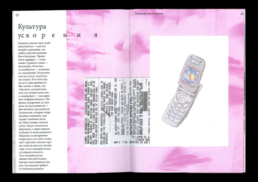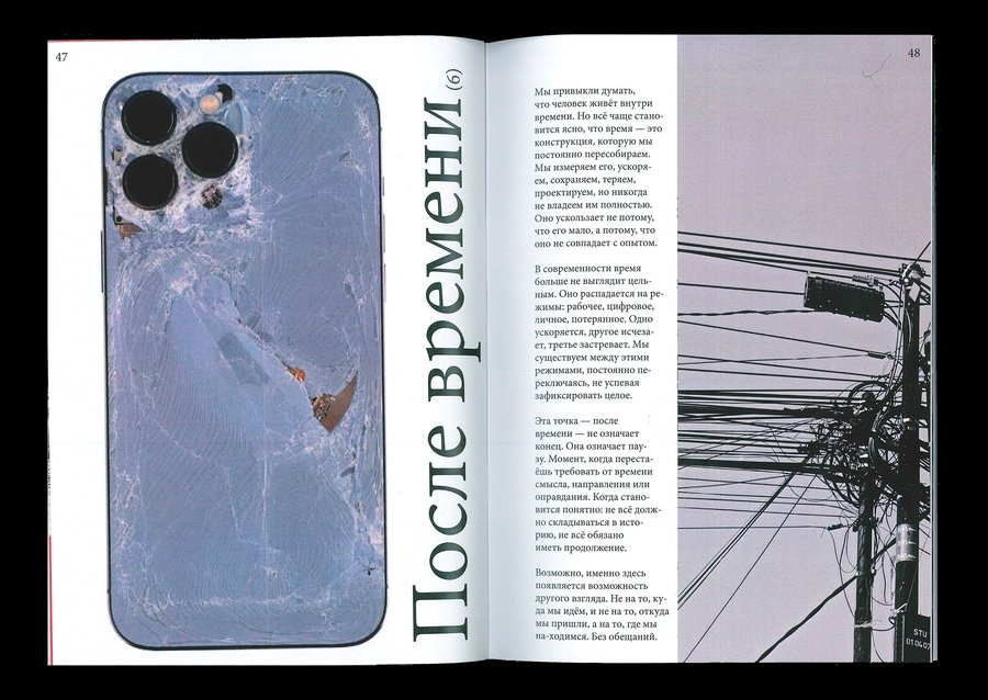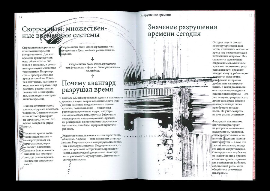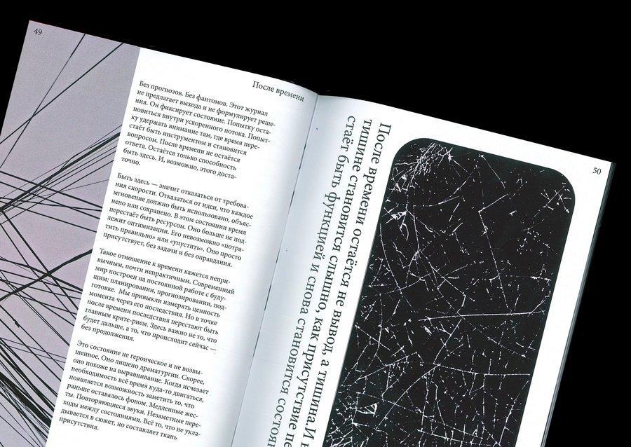 «Shift» — это экспериментальный журнал на грани философии, науки и дизайна. Он исследует время не как абстрактное понятие, а как живое переживание. Каждый раздел — самостоятельный визуально-текстовый мир, где слова, изображения и верстка работают вместе.