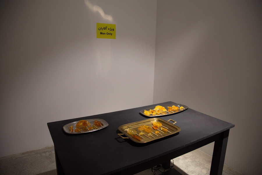 Проект Елены Артеменко «Разрешенные сладости» сделан в рамках Kooshk Artist Residency Award в Тегеране. Елена в течение месяца делала слепки с частей тела иранских женщин, которые разрешено открывать публично. Из этих слепков художница сделала леденцы. В рамках проекта были записаны интервью с участницами о восприятии своего тела, страхах и ощущениях своей сексуальности в ситуации, когда они вынуждены скрывать под хиджабом все тело за исключением кистей рук и лица. Записи интервью были включены в инсталляцию.