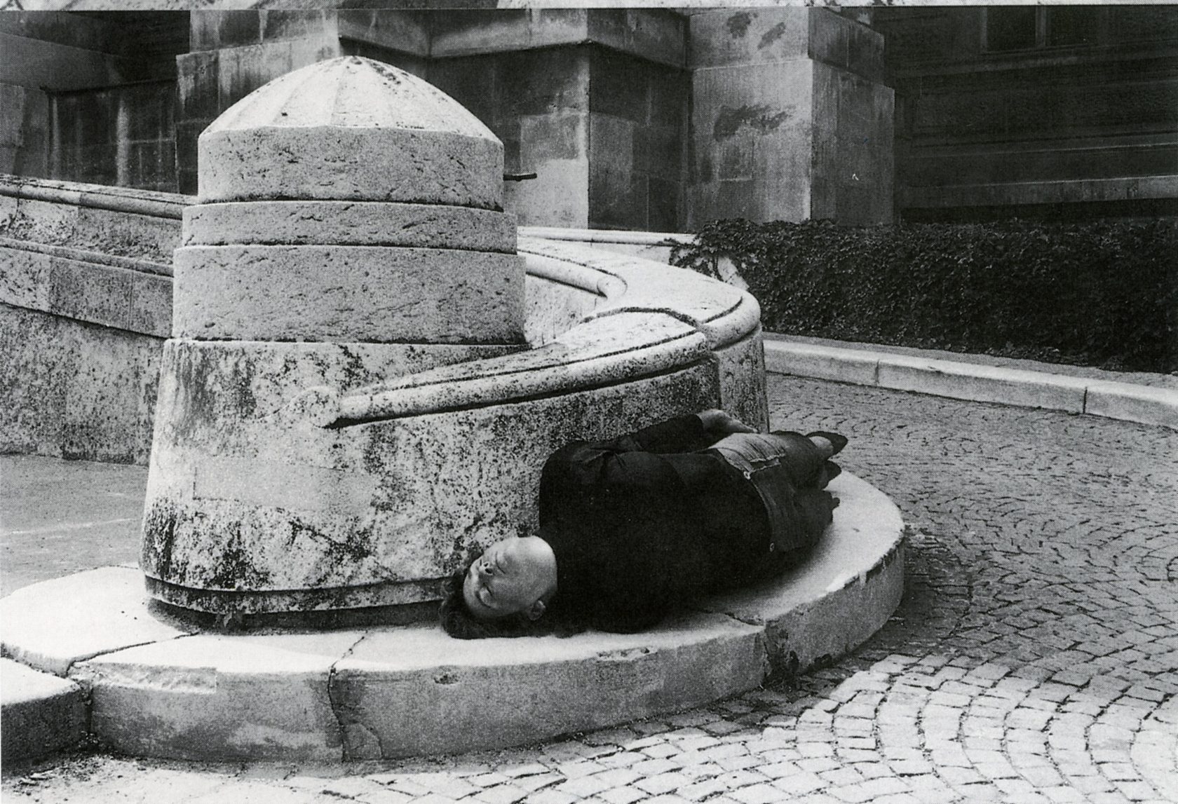 В серии «Конфигурации тела» Валли Экспорт вписывает свое тело в городское пространство: она обтекает углы зданий, прижимается к фасадам, сливается с бетоном и сталью.
